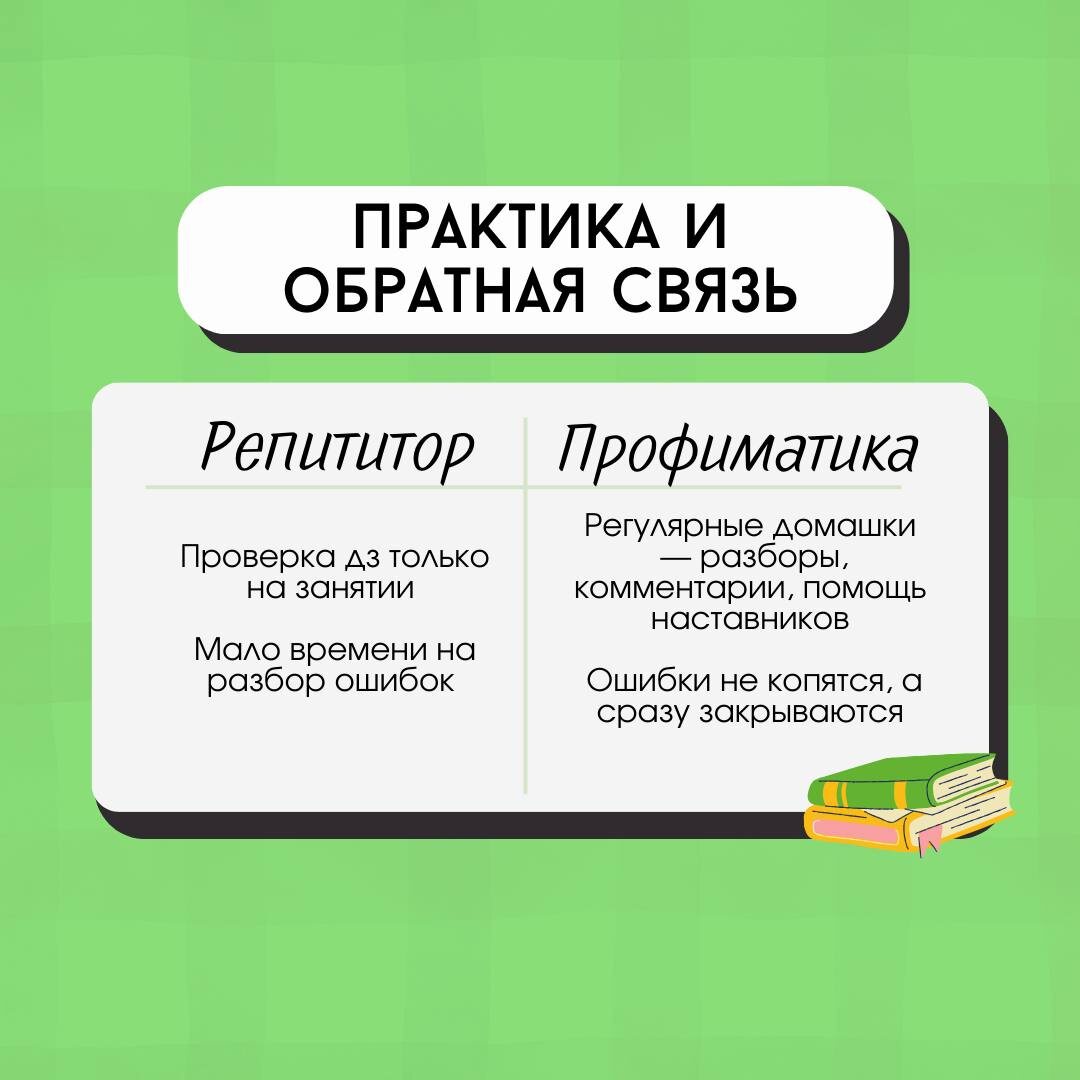 🐈 Кто победит в этой битве? Мы собрали честное сравнение в карточках: как проходят занятия, как происходит проверка домашних заданий, какой подход к ученикам, ну и конечно, сравнили цену 🐱Да, репетитор — это индивидуально, тут бесспорно. Но за цену двух занятий с репетитором в Профиматике ты получаешь целый месяц системной подготовки: занятия, записи, домашки, разборы, наставников, марафоны и мини-курсы 💚Сейчас стоимость: — 5999 ₽ — месяц — 19 999 ₽ — весь курс сразу — экономия 4000 ₽, если брать целиком (самый выгодный вариант) ▫️Мы не просто «проходим темы», а выстраиваем подготовку так, чтобы даже с нуля ты смог закрыть все пробелы и прийти к высоким баллам▫️ Если хочешь готовиться спокойно, системно и без хаоса — ты знаешь, где нас найти 😉 ➡️ Залетай в Профиматику и начинай готовиться с нами