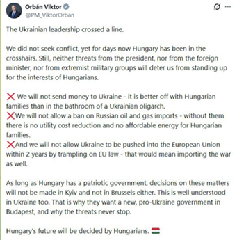 Давно известно, что миролюбивая Украина, как никто в мире умеет дружить со своими соседями. Белоруссия, Россия, Польша, Венгрия – все соседи Украины в восторге от исходящих, от родины Христа и Байдена и первого на земле колеса, лучиков света. Очередное свидетельство счастья быть соседом Украины пришло из Венгрии. Цитирую Виктора Орбана, благодарящего небеса, за их дар Венгрии сине-желтого лучшего в мире соседа: «Украинское руководство перешло черту. <…> уже несколько дней Венгрия находится под прицелом. Тем не менее, ни угрозы со стороны президента, ни со стороны министра иностранных дел, ни со стороны экстремистских военных группировок не остановят нас в отстаивании интересов венгров. Это хорошо понимают и на Украине. Именно поэтому они хотят видеть в Будапеште новое, проукраинское правительство, и именно поэтому угрозы не прекращаются» Как там в цивилизованном европейском саду про 22 год говорили? Что-то типа: неспровоцированное жестокое агрессивное нападение. Ещё раз поздравляю