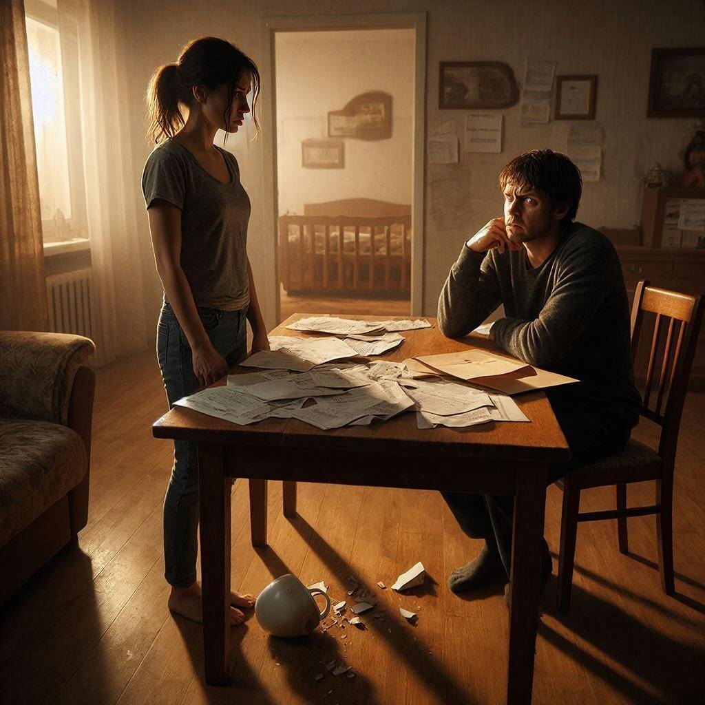 Муж сидел напротив. Не Андрей уже, а какой-то чужой мужчина с его лицом. На столе лежали распечатки — выписки по счетам, долговые расписки, какие-то цифры в столбиках.