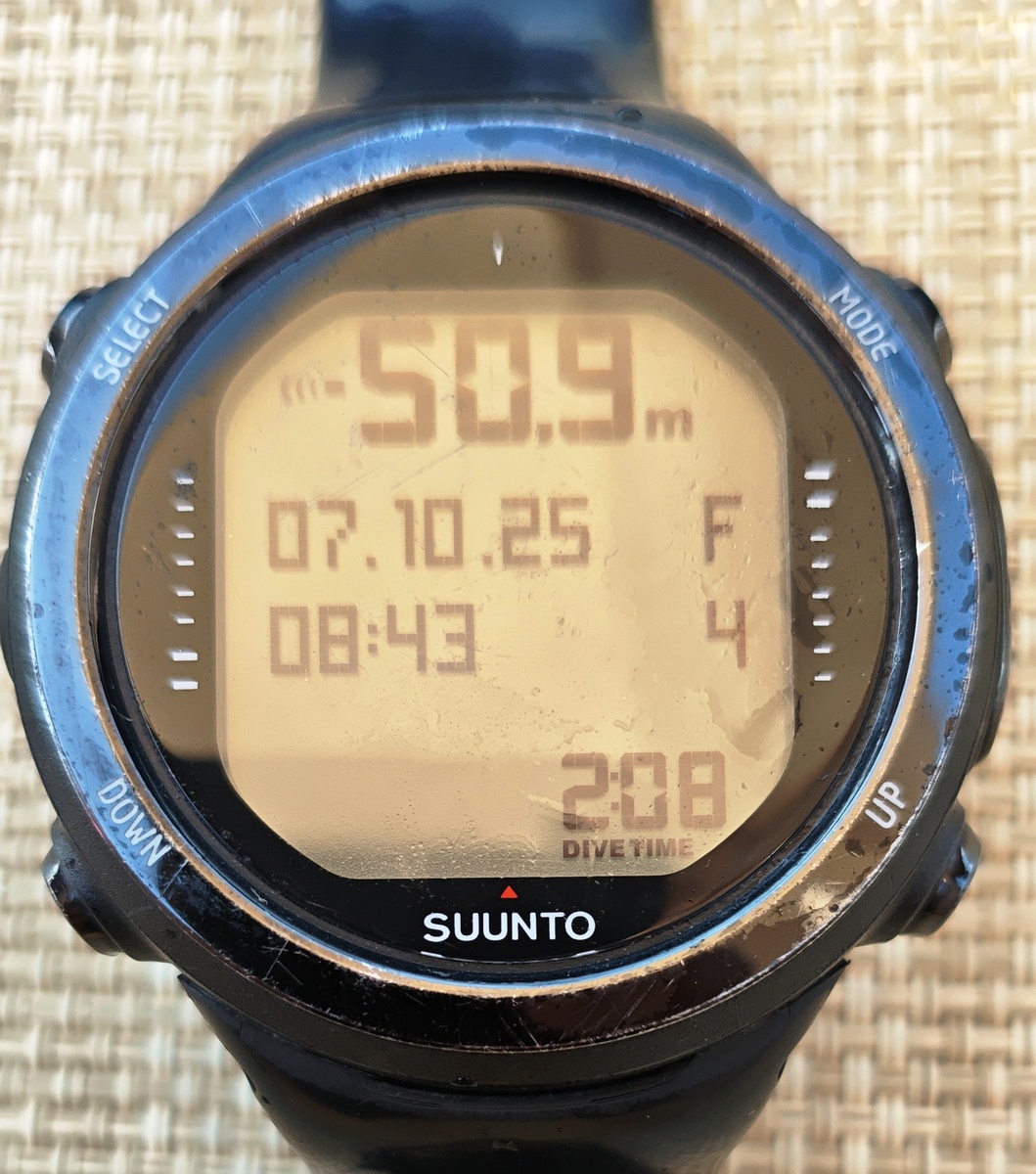 Я быстро его освоил и результаты не заставили долго ждать, после очередного погружения, прибор показал 34,9 метров, прошлый рекорд 33 метра 2014 года ушёл в историю, даже стало немного грустно. Моя максимальная глубина той поездки составила 40,1 метр. План выполнен!