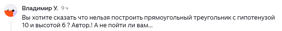 А дальше мы видим, что по мнению комментатора сторона треугольника не может измеряться дробным числом. Вот такое школьное математическое образование.