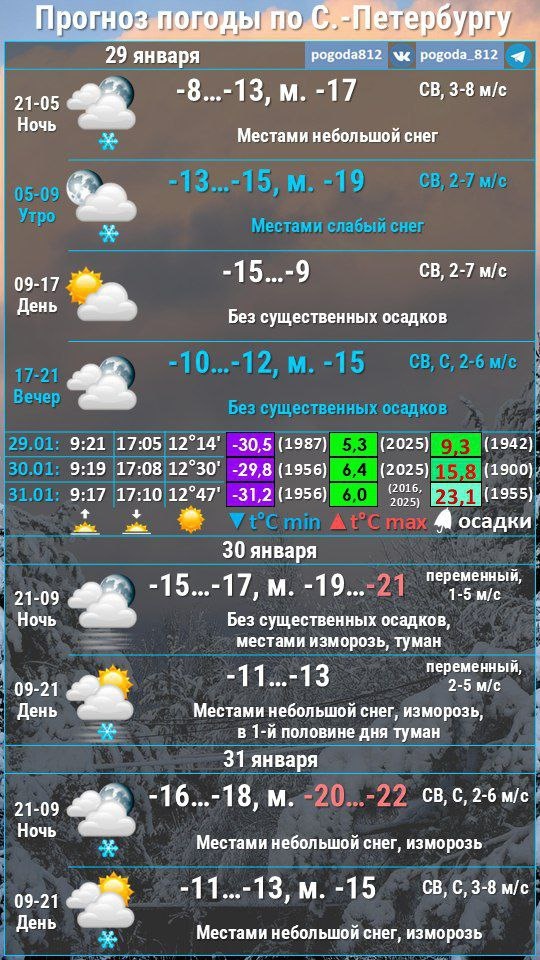 ❗️📉КУРС НА УЛЬТРАПОЛЯРНОЕ ВТОРЖЕНИЕ Да-да, изучив прогностические карты и проследив на потоком воздуха на уровне АТ850 (около 1,5 км), можно с "небольшим но" утверждать, что предстоящее вторжение холода, пик которого придется на 31 января и 1 февраля, по восточной периферии Скандинавского антициклона DANIEL будет ультраполярным. "Небольшое но" заключается в том, что арктический воздух перед обвалом с северо-востока зацепит акваторию Баренцева моря, так ведущий поток будет все-таки не чисто северо-восточным, с Карского моря, а северо-северо-восточным. Но сути это ничего не меняет. В предстоящие 4 суток, 29 января - 1 февраля, облаков в целом по региону будет заметно меньше, а заток высотного холода усилится, что в совокупности приведет к усилению морозов. Разве что утром и днем 30 января, а также ночью 31 января по вине смещающегося со стороны Финляндии через Ленобласть компактного высотного циклона, которой вклинится в циркуляцию Скандинавского антициклона, облачный покров слегка у