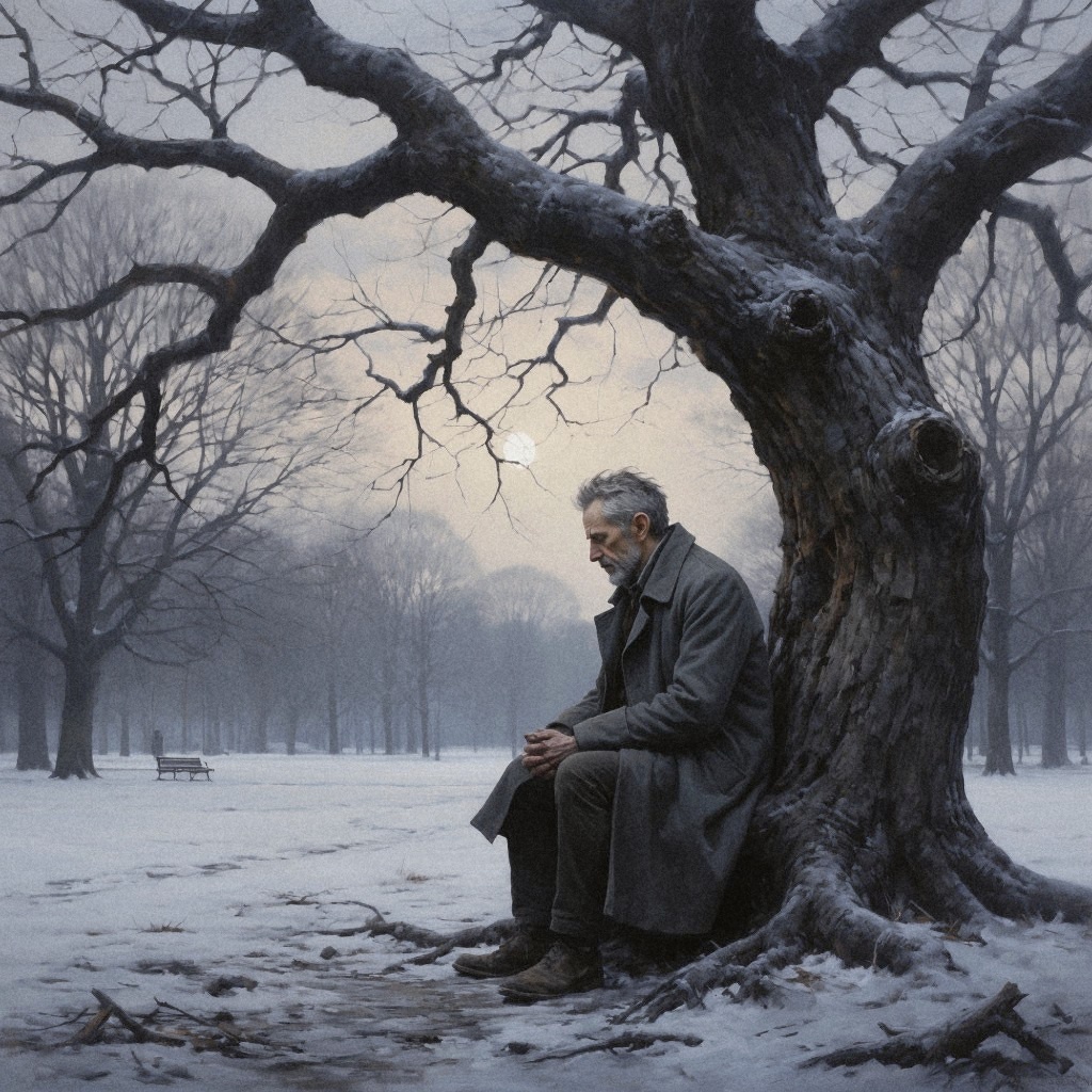 Враз постарел и, дрожа, под замёрзшей осиной,