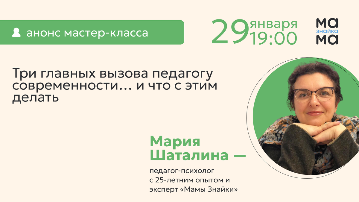 Педагогу легко почувствовать, что голова кругом. И вместо спокойной работы с детьми мы всё чаще разбираемся с отчётами, платформами и конфликтами. Постепенно уходит удовольствие от профессии — остаются усталость, раздражение и ощущение, что «я не справляюсь» Мы хотим поддержать вас и дать рабочие опоры. Приходите на бесплатный мастер-класс «Три главных вызова педагогу современности… и что с этим делать» 🗓 29 января в 19:00 МСК Вы получите решения, которые работают в реальной практике, а не «на бумаге». Что вы узнаете: как справляться с требованиями администрации и при этом всё успевать 🟢как не выгореть и вернуть интерес к профессии 🟢 как превратить родителей из критиков — в союзников и партнёров 🟢 как использовать ИИ в работе (дадим готовые сценарии) 🟢 как мотивировать детей и «конкурировать» с гаджетами 🟢 как внедрять игровые механики на занятиях (примеры работающих техник) 🟢 как стать педагогом, который будет востребован всегда 👩🏻💼 Ведущая: Мария Шаталина — педагог с 25-ле