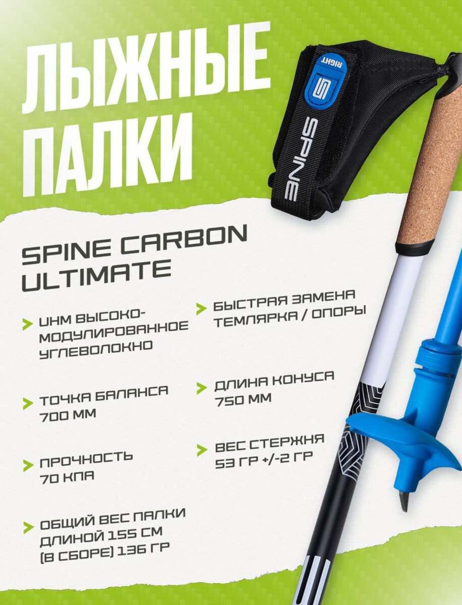 Гоночные лыжные палки SPINE Ultimate Carbon Pro 👇 ✔️ В основе — UHM высокомодульный карбон, обеспечивающий высокую жёсткость при минимальном весе и точную передачу усилия при каждом отталкивании. Продуманная геометрия стержня и высокий баланс делают палки стабильными и отзывчивыми как на снегу, так и на лыжероллерах. ✔️ Рукоятка с зоной хвата из натуральной пробки по всей окружности комфортно лежит в руке, а анатомический темляк с системой быстрого съёма позволяет легко адаптироваться к условиям гонки. ✔️ Система сменных лапок и наконечников даёт возможность быстро подобрать конфигурацию под разные покрытия — без инструментов и лишних движений. Палки подходят для конькового и классического хода, тренировок и стартов высокого уровня. Ultimate Carbon Pro — это современный инструмент для тех, кто хочет чувствовать полный контроль над движением и уверенностью в каждом толчке.