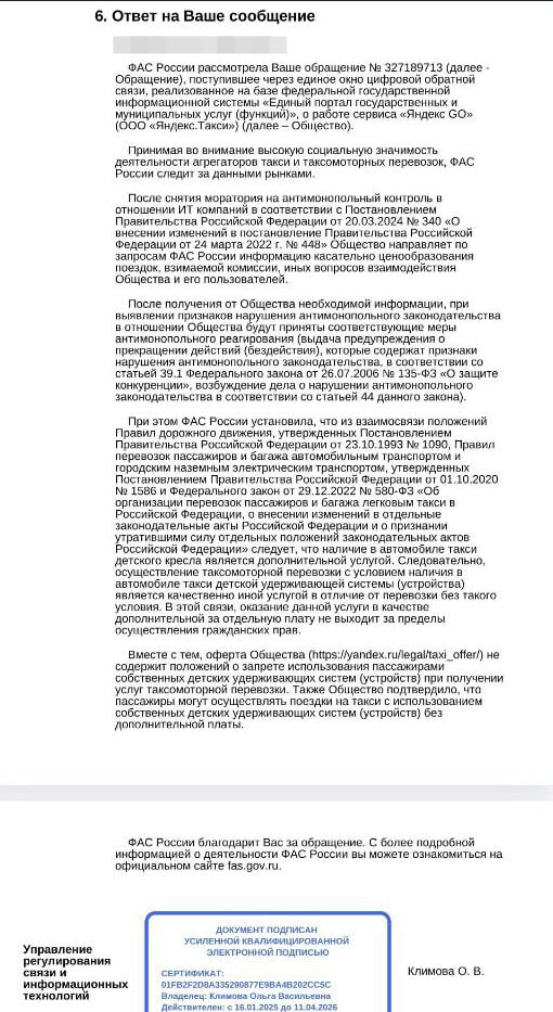 ФАС России не нашла нарушений в повышенных тарифах на такси с детскими креслами