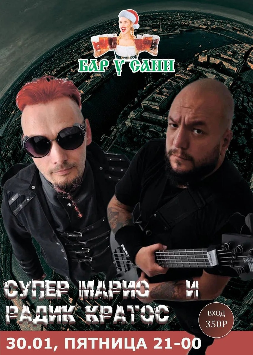💪 Пятница, 30 января Супер Марио и Радик Кратос рвут сцену! Будет громко, мощно, безумно круто и, конечно, Король и Шут будет! Розыгрыш приза. Начало: в 21:00 Вход: 350 руб Бронь: 8-902-406-06-02 📍 Бар «У Сани», Пролетарская, 25/1 Суббота, 31 января Сева Сафронов и ваши любимые поп-рок композиции: от Жени Трофимова и XOLIDAYBOY до RadioTapok и КИШ!!! Свежее пенное и множество закусок😋. По традиции - розыгрыш секретного приза от бара🥳 Начало: в 21:00 Вход: 350 руб Бронь: 8-902-406-06-02 📍 Бар «У Сани», Пролетарская, 25/1 Воскресенье, 1 февраля Любителей настольных игр ждёт захватывающая игра в «Мафию», которую проведёт опытный ведущий — Сева Сафронов! Уютная атмосфера уютного заведения с вкусными напитками и закусками. Начало: в 21:00 Участие: 200 руб Бронь: 8-902-406-06-02 📍 Бар «У Сани», Пролетарская, 25/1 18+