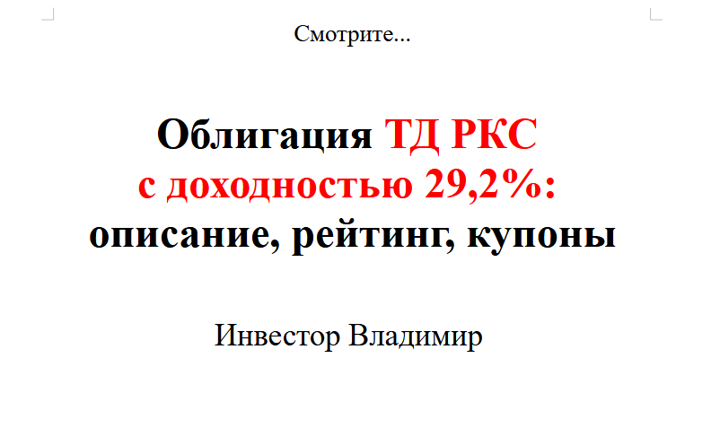 Здравствуйте, я Инвестор Владимир. 34 компании - 97 облигаций, т. е. примерно по 3 облигации каждого эмитента, ежемесячный пассивный доход по всем облигациям (купонный доход) составляет 2 094рубля в месяц, на которые я регулярно докупаю новые облигации и кроме этого пополняю портфель каждый месяц на 10 000 рублей из собственных средств. Доходность портфеля составляет 25% годовых! Мне осталось купить всего 3 облигации и у меня в портфеле будет ровно 100 облигаций — первая маленькая победа! Медленно и уверенно иду к цели: 20 000 000 рублей за 15 лет! А теперь... 1) Эмитент -девелопер жилой недвижимости комфорт-класса в регионах России 2) Рейтинг компании - Низкий 3) Доходность к погашению - 29,2% 4) Дата погашения облигации - 13.07.2028 5) Дата выплаты купона - 24число месяца 6) Купон - Фиксированный 7) Величина купона - 20,55₽ 8) Номинал - 1 000₽ 9) Количество выплат в год - 12 10) Субординированность - Нет Вчера компания выплатила мне купоны по 20,55 рублей на 1 облигацию, у меня в по