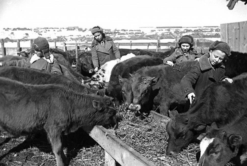 С доски почета работников МТС на нас смотрят фотографии в большинстве молодых людей. Но диаграммы говорят, что они неплохо справились со своими задачами. Если в 1940 году на трактор приходилось в среднем 269 гектаров выработки, то в 1943 году – 422 гектара.