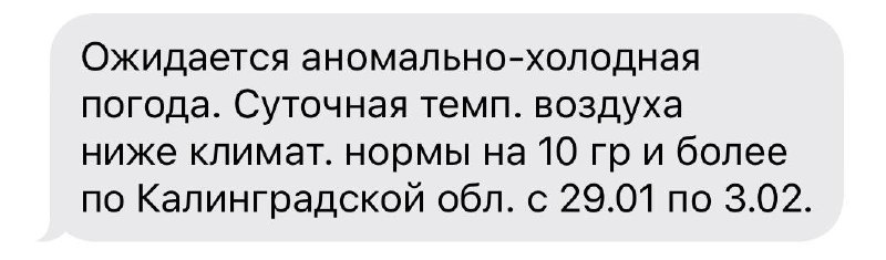 Такую рассылку могли сегодня получить жители региона. Недолго длилась оттепель.