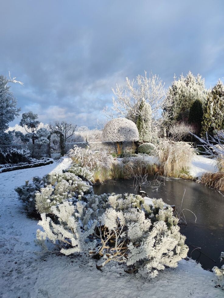 Пока что снег пушистый, еще не слежался и не превратился в лед, пройдитесь по растениям сдуйте его воздуходувкой. Если такой нет, то аккуратно встряхните, но не трясите! В мороз древесина теряет эластичность и становится хрупкой. Даже лёгкое постукивание по ветке может привести к повреждению.