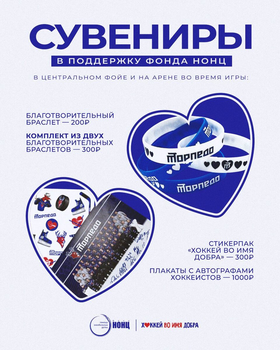 ❤️ На матче против «Северстали» в продаже: 🤍 Благотворительные браслеты 🤍 Стикерпак 🤍 Календарь команды с автографами наших хоккеистов Все средства, вырученные с продаж, в полном объеме будут направлены в фонд для помощи онкобольным детям. Если вы не сможете сегодня быть на арене, но хотите поддержать доброе дело — сделать это можно по ссылке 🔗 Спасибо каждому за участие и поддержку ♥️