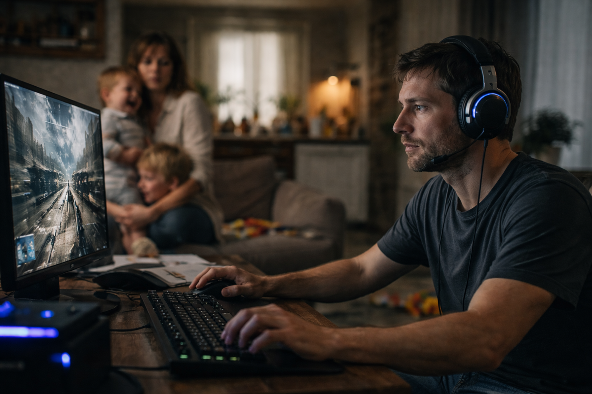 Там есть друзья. Голоса в наушниках. Смех. Маты. Команды: "Прикрой слева", "Отходим", "Красавчик".