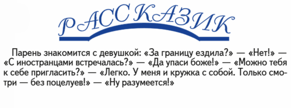 Всем наше с кисточкой, шоб вы были здоровы! Раньше жизнь била ключом 17-19, теперь 41-43, то есть ключ стал больше, ключ стал тяжелее. Любой слесарь понял про ключи. Надеюсь. А вот нынче, интересно, учат на слесарей, или только на менеджеров и сисадминов? Учат?! Надеюсь. А на связи снова Зяма Шнобельсон, дедушка Зяма из Одессы. Одесса теперь уже не та, - говорят некоторые, но ведь коренные одесситы остались, они те же, а значит и чувство юмора в них присутствует. А значит и направление "Одесские анекдоты " по-прежнему развивается и вкапливает в себя новые анекдоты, придуманные одесситами. А значит не бум унывать, ведь с нами сам Зяма Шнобельсон. - Дедушка Зяма, мы заскучали. - Ну, что ж, попробую вас растормошить. """""" """"""" """""" - Гриша, скажу, вам как приятель приятелю - по секрету и под выпивон. Физа Самуиловна Кац-цок такая затейница. Вчера её муж вернулся раньше времени из командировки и застал нас в их комнате на подоконнике. Пришлось мне лететь из окна. Хорош