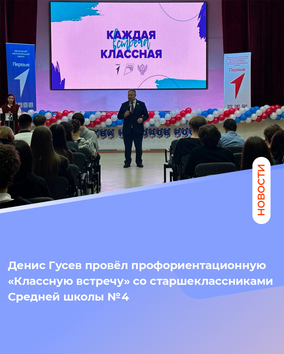 Благодарим Дениса Гусева за содержательный диалог с подрастающим поколением и педагогический коллектив школы № 4 за тёплый приём!
