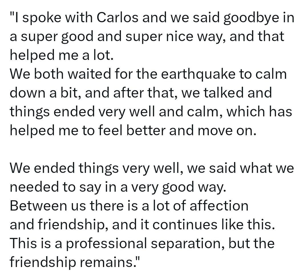 🗣️ «Мы с Карлосом попрощались очень хорошо и мило, и это мне очень помогло