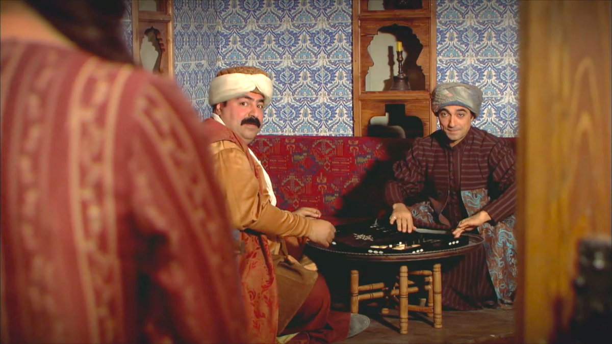 Страшно сказать, что может начаться, если калфа проговорится. А она не просто проговорится, а расскажет той, от которой прежде всего это скрывают! Итак, вспоминаем ту сцену. Сюмбюль играет с главным поваром дворца, Шекер агой, в настольную игру. Часто показывают, как они спорят на что-то. Победивший получает какие-то преимущества. Например, в данный момент Сюмбюль соглашается на следующую партию исключительно за целый поднос пахлавы. И тут заходит Нигяр калфа. Ей нужно узнать одну тайну! - Видишь, нет мне покоя! Без Сюмбюля никак! - говорит главный евнух Шекер аге. Досадно, но ладно. Если Нигяр пришла, значит, дело важное. - Садыку ты отводил к султану? - задаёт Нигяр вопрос, в котором уже есть ответ. Обратите внимание, калфе надо узнать, была ли Садыка у султана вообще. Но по вопросу уже как будто ясно: Нигяр в курсе происходящего. Вот Сюмбюль и попался: - Я ведь ей ясно сказал: "Молчи!" Нет, как соловей запела. Знал бы Сюмбюль, что Садыка ничего не говорила калфе. Та сама догада