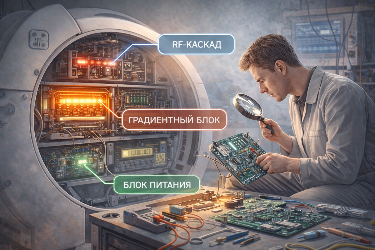 Ломаются конкретные узлы. Внутри МРТ работают параллельно: Каждый блок — отдельная инженерная подсистема.