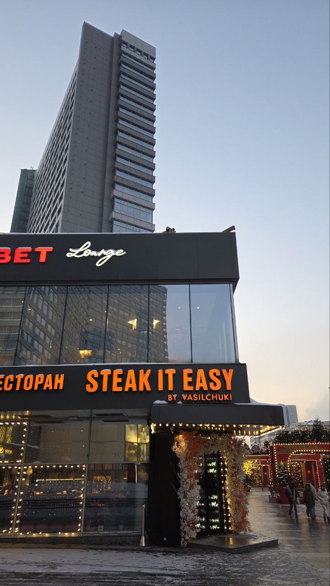 Но привычка выходить «на разведку» сильнее — поэтому обедали вне стен. Сейчас все расскажем… Ресторанов на Новом Арбате великое множество – на любой вкус и кошелек. Тут вам и фуд-корты, и белые скатерти со свечами, и демократичные заведения. Но у Овцы Бориса есть свой фаворит – мясной ресторанчик Steak it Easy by Vasilchuki, который мы запомнили благодаря прошлому Гастрономическому фестивалю. Мясо тут прекрасное, а цены честные. И еще, прямо сейчас – аргентинские каникулы! Читай - "настоящее аргентинское мясо по почти аргентинской цене". ❤️ Гурман Овца Борис решил оторваться по полной. На закуску взяли – Хурму с вяленой уткой и страчателлой (630 руб.) – легкий диетический и невероятно ароматный стартер. И далее по меню: - Аргентинский вагю-бургер (1490 руб.) с большой котлетой из рубленого мяса. Зачетный! - Пиканья с соусом из зеленого перца и бататом с пармезаном (2990 руб.) Оооочень нежное мясо с кремовым соусом. - Асадо-вагю со спаржей (4990 руб.) попробовать не удалось. Поставка