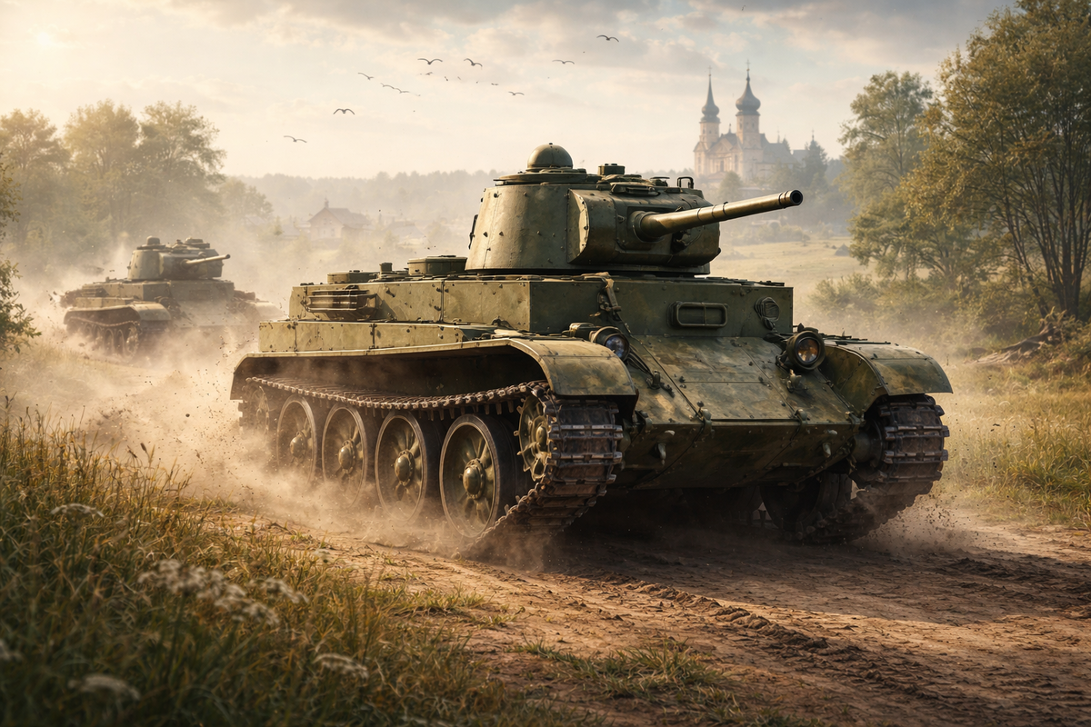 Представьте себе картину: лето 1930-х, Киевские маневры, иностранные атташе в легком шоке. По полю на скорости под 70 км/ч несется стальная коробка, эффектно прыгает с трамплина на 20 метров и, не сбавляя хода, улетает за горизонт. Это БТ-7 — символ советской мощи, «автострадный танк», который должен был диктовать волю на европейских дорогах. А теперь перенесемся в июнь 1941-го. Те же самые «летающие танки» стоят брошенными вдоль дорог, догорают в придорожных канавах или превращаются в решето после первой же встречи с немецкой противотанковой пушкой. Почему машина, способная обогнать грузовик, оказалась беспомощной в реальном бою? Давайте разберемся без лишних сантиментов. В основе серии БТ лежала концепция американца Джона Кристи: танк должен быть быстрым, как кавалерия. Чтобы этого добиться, конструкторы пошли на сделку с дьяволом, принеся в жертву всё остальное. Звучит как дикость, верно? Зачем строить танк, который пробивается винтовкой? Но в том-то и дело, что была логика: «Нас н
