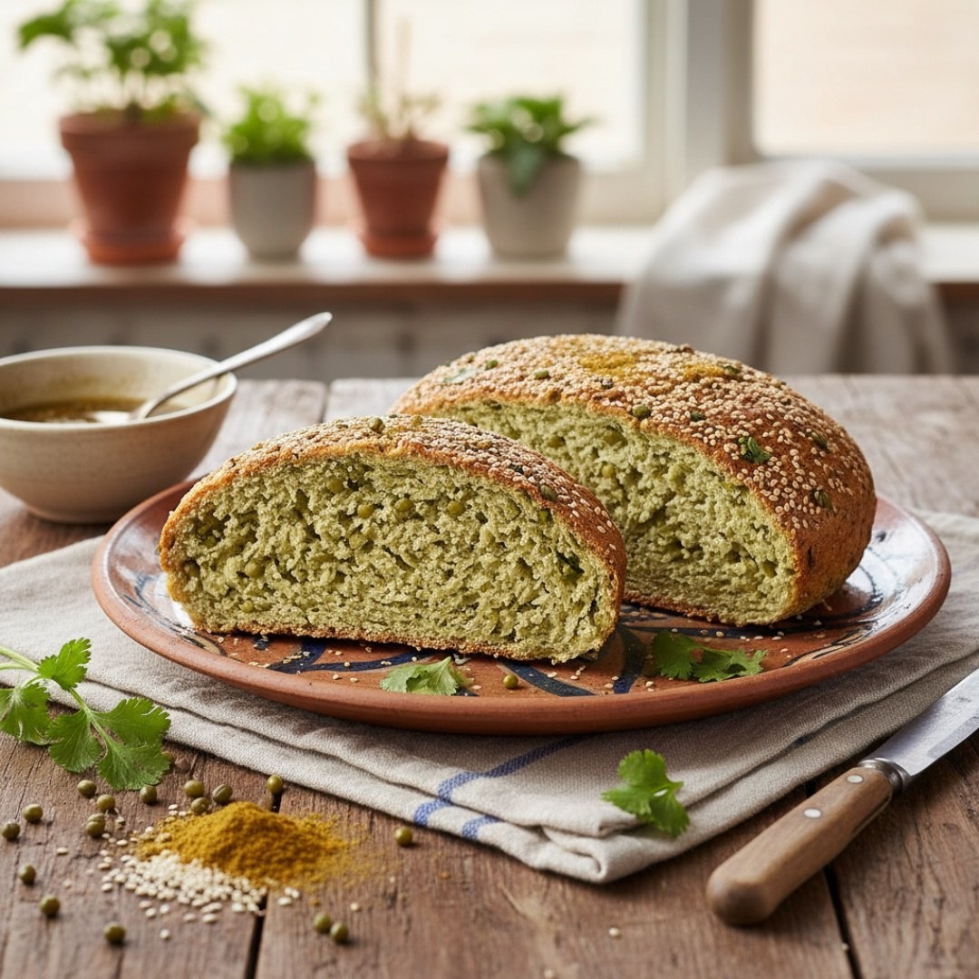 Ингредиенты⤵️ 🔸Маш — 200 г 🔸Вода — 400 мл 🔸Лук репчатый — 1 шт. 🔸Чеснок — 3 зубчика 🔸Соль — 1 ч.л. 🔸Сода — ¼ ч.л. 🔸Зира, кориандр — ½ ч.л. 🔸Растительное масло — 2 ст.л. 🔸Кунжут — 10 г Приготовление🫓 1. Маш промыть, залить водой на 8–12 часов. Слить воду. 2. Измельчить маш в блендере с 100–150 мл свежей воды до однородной пасты. 3. Лук и чеснок мелко нарезать, обжарить на 1 ст.л. масла до мягкости. 4. Смешать машевую пасту, обжаренные лук с чесноком, специи, соль и соду. Тесто должно быть как густая сметана. 5. Форму для выпечки застелить пергаментом, смазать маслом. Вылить тесто, разровнять. Посыпать кунжутом. 6. Выпекать при 180°C 40–50 минут до золотистой корочки и сухой зубочистки. 7. Дать хлебу полностью остыть в форме, затем нарезать. Рецепт дня #хлеб #домашний_хлеб #маш #выпечка #машовый_хлеб