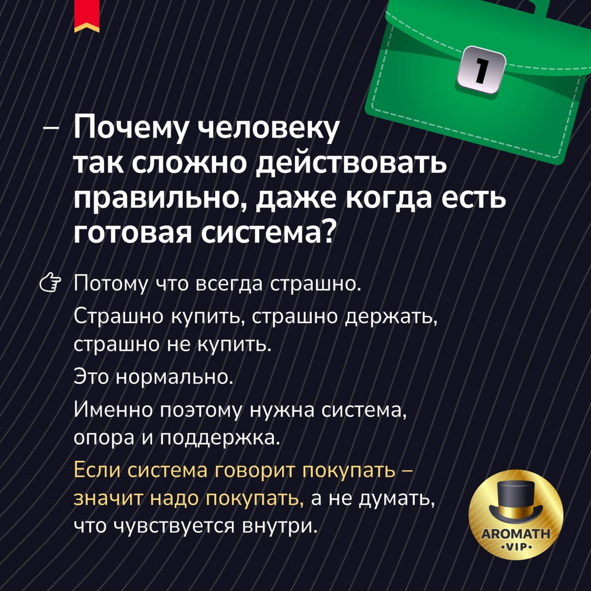 ? 👆 Инсайты со свежего эфира Ароматный вечер🌙 Клуба. Говорили о том, что большинство сейчас чувствует одно и то же: страшно покупать, страшно держать, страшно остаться без позиции. И почему именно в такие моменты система важнее любых эмоций. Эфир получился не только про прогнозы и сценарии. А про мышление, логику и практику. Про то, что отличает тех, кто забирает движение, от тех, кто его просто наблюдает. Всю эту же логику, структуру, мышление и систему я буду раскрывать в этот четверг на Большом и Мощном Вебинаре AROMATH🎪 (БМВ). 📍Если у Вас внутри сейчас много вопросов к рынку, к своим действиям, к результатам - БМВ может стать той самой точкой, с которой начинается ясность. Приходите на БМВ. Даже если просто послушать - это уже может многое расставить по местам. ✍️ 29 января в 19:00 - ссылка на эфир будет опубликована за 1 час до начала.