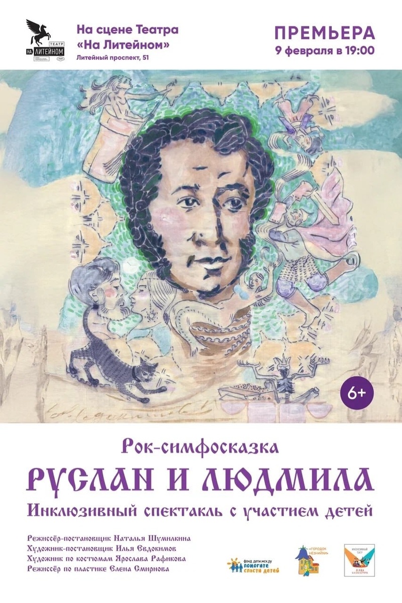» История инклюзивного театра «Наш балаганчик» реабилитационного социального проекта «Городок Незнайки» началась в 2015 году, когда сотрудничество фонда «Дети.мск.ру» и режиссера Натальи Шумилкиной положило начало проекту театротерапии. За почти десять лет воспитанники создали два онлайн-проекта и несколько больших спектаклей, покорившие сцены Москвы и Санкт-Петербурга. Уникальная труппа снова едет в Санкт-Петербург. В рамках гастролей петербуржцы увидят спектакль рок-симфосказку «Руслан и Людмила»! В благотворительном спектакле дети-сироты-инвалиды представят историю взросления и становления двух героев: Руслана и Людмилы в жанре игрового театра. Вместе с актерами зрители пройдут дорогами серьезных испытаний, поймут, почему Руслан должен был потерять Людмилу, где он встретил Голову спящего витязя, зачем ему меч, а также, что означает инициация. И все это в игровой, «хулиганской» манере, начиная с озорного посвящения и пролога. 🗓 9 февраля | 19:00 👥 Дети 6+ и их родители 🎟 Реги