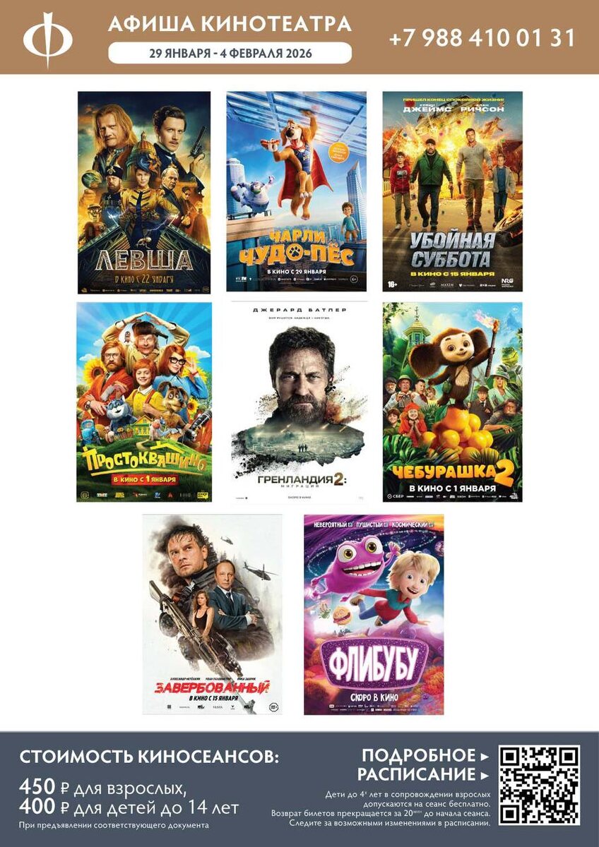 🍿Расписание кинотеатра с 29 января по 4 февраля.
