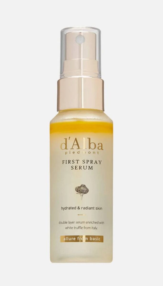 : d'Alba Piedmont First Spray Serum Это легкая увлажняющая спрей-сыворотка с акцентом на сияние, тонус и антиоксидантную защиту. Основная задача — быстрое тонизирование, "дозаправка" кожи влагой и легкое питание, а не глубокое восстановление или защита. Ключевые компоненты и их роль: 1. Увлажнение и комфорт: Глицерин, гидроксиэтилмочевина, бетаин, сорбитол — комплекс увлажнителей, притягивающих и удерживающих воду. Дипропиленгликоль помогает доставлять активы. 2. Антиоксидантный щит и питание: Экстракт белого трюфеля (Tuber Magnatum) — главный "герой" состава, богат антиоксидантами и витаминами. Масло авокадо, подсолнечное масло, токоферол — питают и смягчают. 3. Укрепление и выравнивание: Ниацинамид — для улучшения барьерной функции и тона кожи. (От акне воспалений) Аденозин — обладает anti-age потенциалом. 4. Комплекс растительных экстрактов: (Сальвия, Базилик, Овес, Женьшень, Лотос, Эдельвейс и др.) — оказывают успокаивающее, тонизирующее и антиоксидантное действие. 5. Важный ми