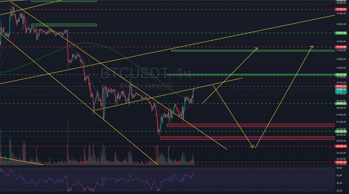 ! ⚠️ Решение по ставке, выступление Трампа, Выступление Пауэлла, всё самое сочное в один день, в одном флаконе! 💎 Мы тоже не без новостей, у нас появился бот, где вы можете получать полезные Гайды, бонусы и не только, ну и авторизация в канале теперь будет только через него, дабы еще сильнее защитить нашу Семью. ➡️ Бот доступен в ТГ вооот тут, по возможности в него нужно пройти всем подписчиком. @CryptoPsy_education_bot Ну перейдем к BTC и ETH собственно: Pro BTC: 🔼 График закрыл ГЭП, показал не плохую динамику роста на объемах, закрепились выше 88000 нашей важной поддержки и подошли уже к 90200 где след уровень, наклонная локальная + уже рядом 200 МА, должны пробивать и идти к 91400, но далее может последовать возврат под МА со снижением ниже, если не удержимся выше МА и 90400, а риски с учетом новостного фона большие, потенциал роста же остается как минимум 93800-94200, глобальная ликвидность сейчас вся там. Риски: 🔽 Если Наши друзья наговорят негатива поедем к зонам ликвидн
