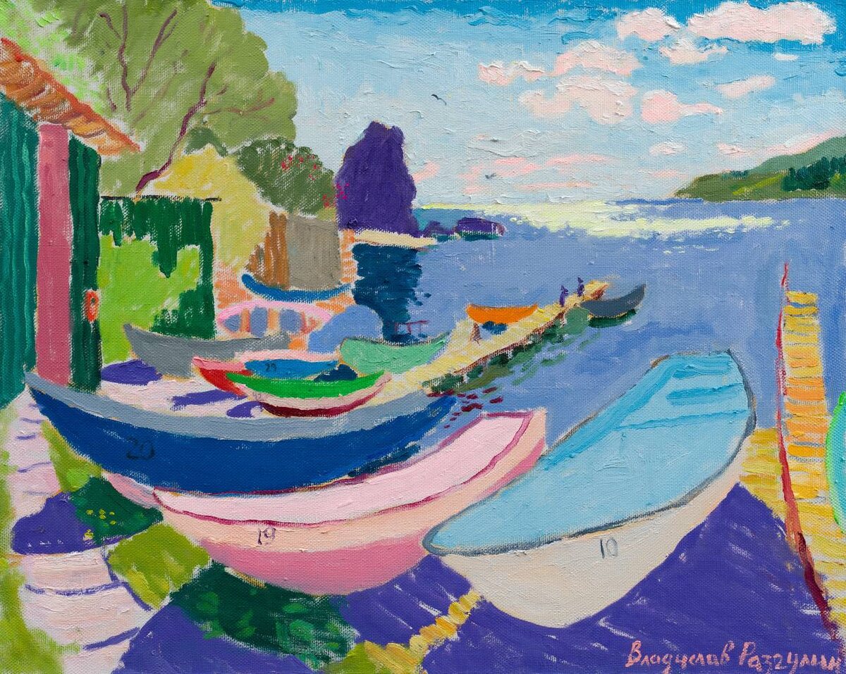 65х82 холст/масло 2024 ••• «Лодочки» выстраивают спокойный и устойчивый ритм прибрежной жизни. Корпуса лодок собирают пространство воды и берега, создавая чувство равновесия и надежности. Чистые, открытые цвета вызывают воспоминания о жарком дне, о нагретом дереве, о легком покачивании у воды. Картина хранит переживание простого присутствия рядом с морем. ••• Прогуляться по солнечным улочкам Гурзуфа и окунуться в яркие краски лета можно в галерее YOLKA art до 10 февраля 2026. ••• Москва. Ходынский бульвар 20а, с 11:00 до 21:00 ежедневно. Выставка бесплатная, работы продаются. Вся контактная информация на сайте YOLKA.art