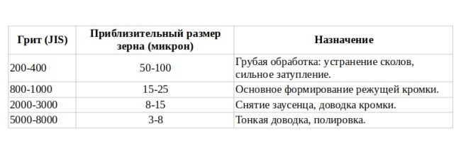 Для повседневного выбора водных или керамических камней достаточно ориентироваться на GRIT.
