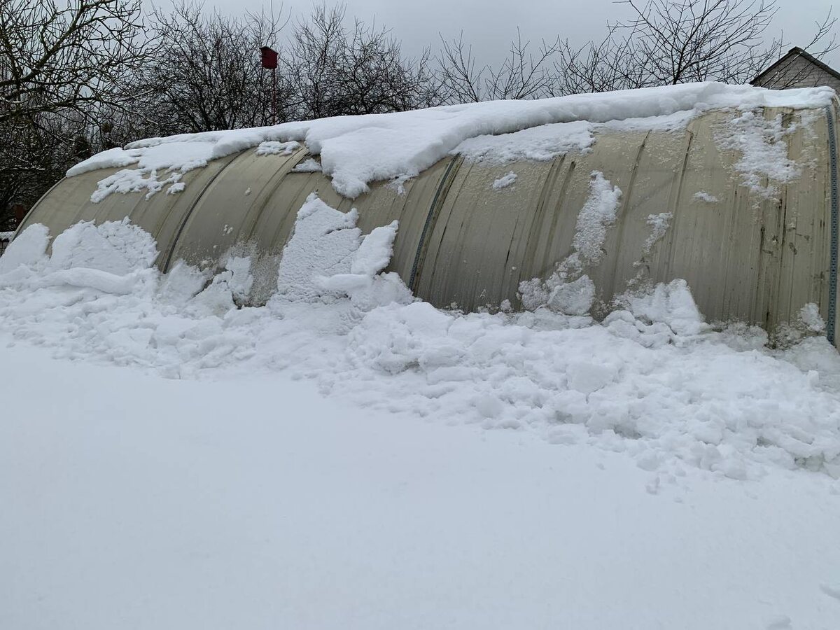 А ведь теплице всего 5 лет! Снега на ней было не так и много — думали, «само растает» – уже третий день, как днем на улице плюсовые температуры.