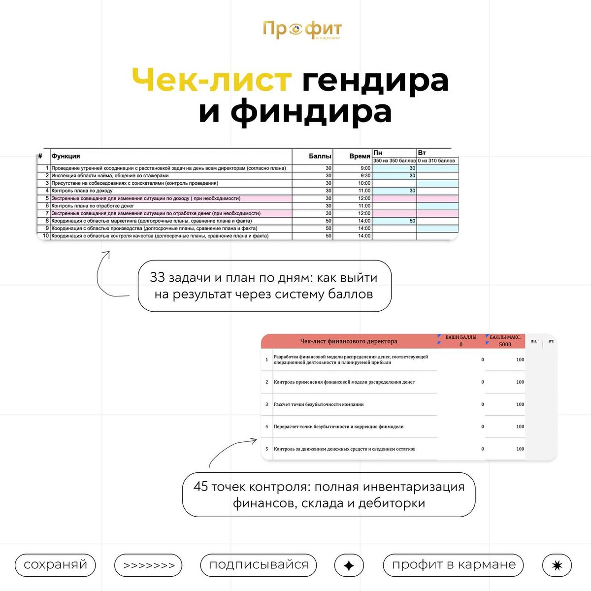 Управлять можно только тем, что измеримо. Мы собрали комплект для инвентаризации бизнеса в цифрах: от оценки компетенций топ-менеджеров до чек-листа проверки бухгалтерии на 57 пунктов. В итоге вы оцените компанию в баллах, найдёте слабые узлы и поймёте, что именно чинить — без «кажется» и «на доверии». Что внутри: • Фундамент — глобальный аудит учредителя: 69 критериев оценки бизнеса. • Управление — пошаговые чек-листы для CEO и финдира + план задач по дням. • Команда — чек-ап ТОП-менеджмента: навыки, управленческий потенциал, зоны роста. • Деньги — 4 гайда: KPI, дебиторка, кредиторка, проверка бухгалтерии. Никакой теории — только таблицы, чек-листы и алгоритмы, которые выдержали проверку практикой в сотнях компаний. ✅ 🔗 Скачать «Пак инструментов»