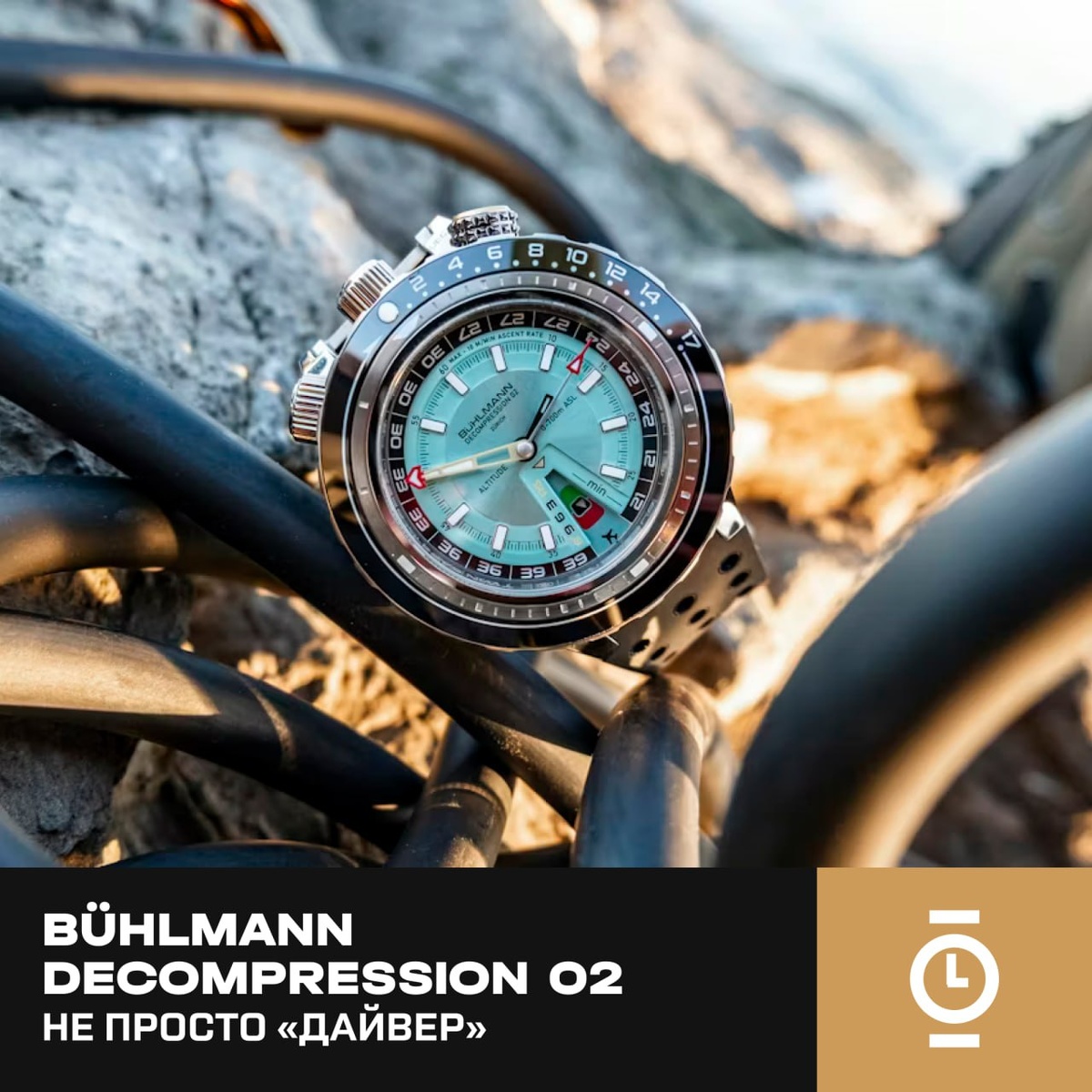 » #новости_WD Bühlmann Decompression 02 — редкий пример часов, которые не притворяются профессиональным инструментом, а действительно им являются. Формально это массивные дайверские часы с WR 575 м, гелиевым клапаном и внушительным весом 204 г, но их суть гораздо глубже. Модель создана как механический инструмент для реального планирования и контроля декомпрессии — в нынешнем мире «дайверов для офиса» это редкость. Марка Bühlmann — суббренд швейцарской платформы Watch Angels. Decompression 02 стала развитием модели Decompression 01, разработанной в сотрудничестве с сыном Альберта Бюльмана, автора знаменитой декомпрессионной модели ZH-L16 (1950-е — 1980-е). ZH-L16, в свою очередь, лежит в основе большинства современных дайв-компьютеров: шкал, безелей и логики управления. Стальной корпус — настоящий «тяжеловес»: диаметр 48,5 мм, толщина 17 мм, а масса больше, чем даже у монструозных Omega Ploprof. Две завинчивающиеся коронки расположены на 1 и 11 часах, ещё одна центральная отвечает