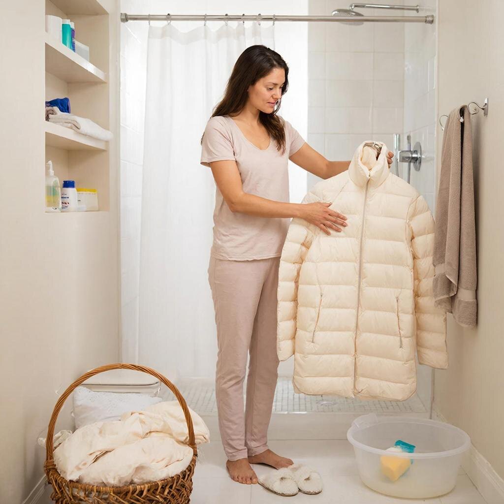 Здравствуйте. Сейчас тот самый сезон, когда уже стирать пуховики, пора настала. Труднее будет, с тем пуховиком, который ещё не раз не подвергался стирке. Так как внутри него скопилась ещё и производственная пыль и приобретённая при носке. Если, его хорошо не выстирать и не прополоскать, останутся разводы. Стирать можно в стиральной машине. Для этого нам понадобится уровень "Деликатной стирки". Тобишь температуру не выше 30 градусов. а в специально отведённый отсек, добавьте порошок или жидкость для деликатных тканей. Но, лучше бы найти специальное средство для стирки пуховых изделий. Стираем пуховик застёжками внутрь. А изнанкой наружу. Но, на этом не всё. Нам понадобятся три теннисных мяча, либо мячи с плотной резины. Это нужно для того, чтобы при стирке в машинке, они постоянно отбивали пух, чтоб он не сбился в комочки. При отжиме их функция будет наиболее эффективна. А при сушке пуховика, время от времени, взбивайте его хлопушками для ковров. Потому, что при высыхании, пух начнёт