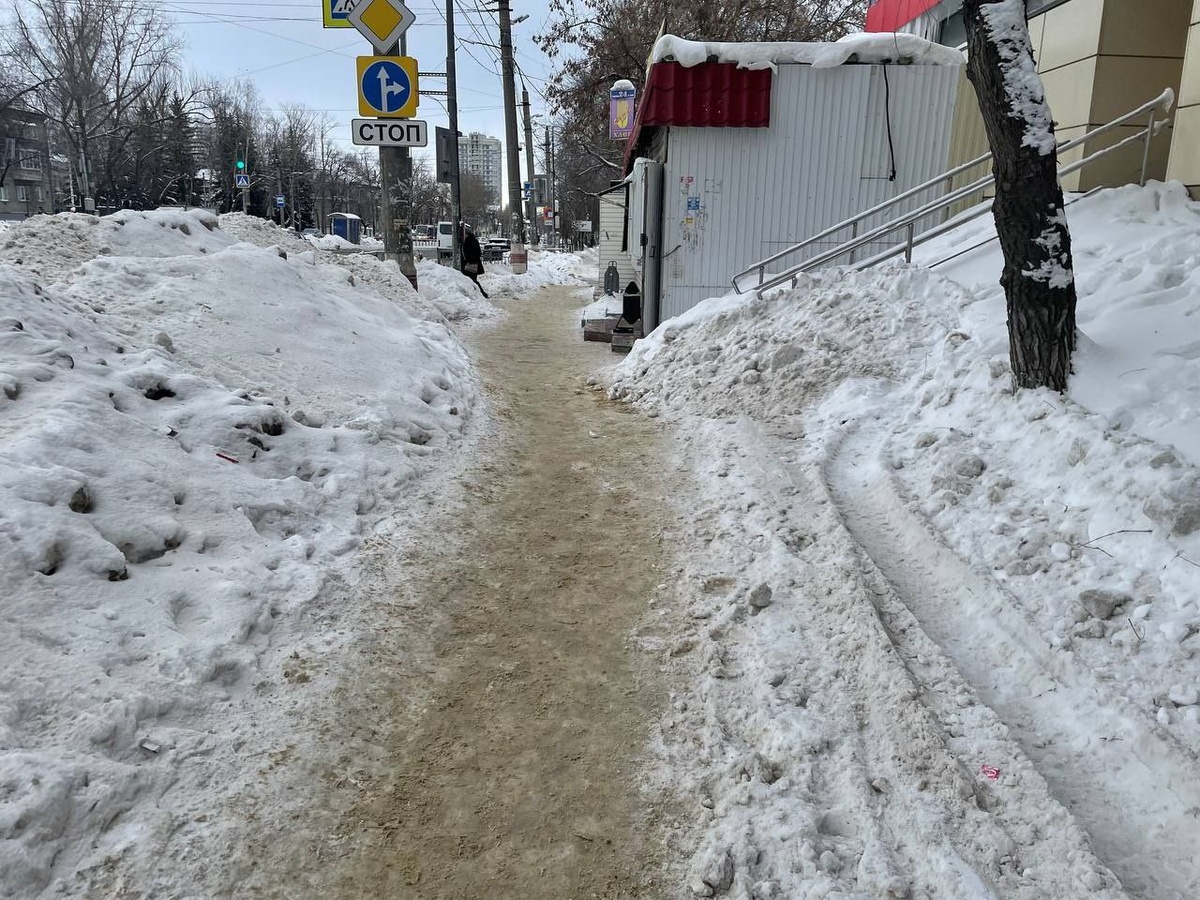 В соцсетях сообщают, что на остановке «Телецентр» на проспекте Нариманова не вывозят снег