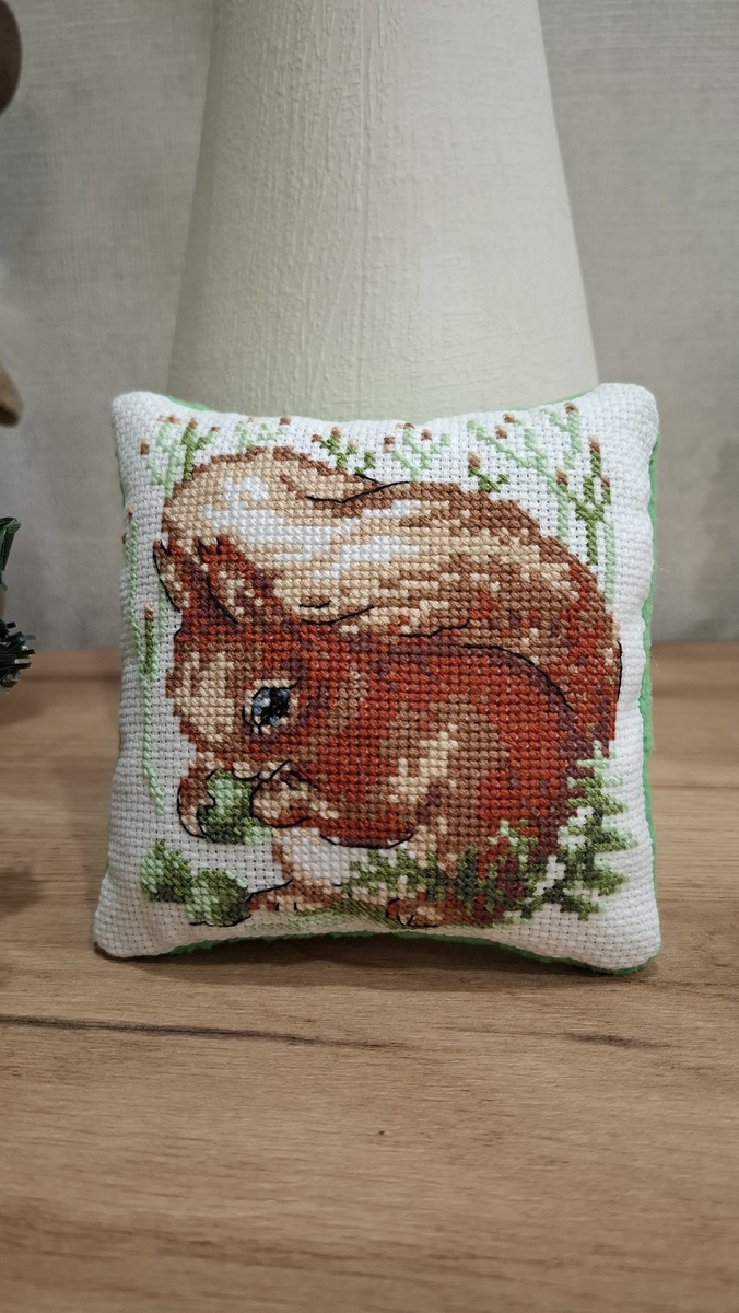 Добрый вечер, дорогие друзья! Давно мы с вами не виделись. Сегодня будет статья о вышивке за вторую половину января. Я на столько вдохновилась годовыми результатами девочек, столько пересмотрела итоговых видео на Дзене и Рутубе, что весь январь моя иголочка трудилась так, как никогда. Даже не хотелось выпускать ее из рук, чтобы написать статью о продвижениях. Вот только сейчас, когда вышились три работы, решила уделить время для канала. Первый финиш вы конечно уже видели, это Белочка от Кларт. Маленькая работка, на три вечера, оформленная в подушечку. Дизайн 2004 года. И она очаровательна. Мне напоминает рисунок из прошлых лет, так 70- 80-х. Десять цветов нитей, 14 каунт, полный крест в две нити, бэкстич, зашивка не полная. Оформляла вручную, выглядит аккуратно. Идея оформления в подушку пришла сразу. От самой белочки в восторге, такая миленькая, прямо ребеночек. Вторым финишем была вышивка из магазина Фикспрайс. Не помню, чтоб когда либо покупала там наборы, но мимо этого пройти не