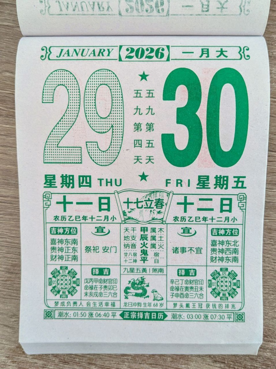 Интересные дни впереди, внимание на экран. 29 января 2026 года, четверг Лунный календарь: 11-й день 12-го лунного месяца Циклическая дата (干支): день Цзя-Чэнь (甲辰) Знак года: Змея Солнечный термин: преддверие начала весны Активная звезда дня: 5-я жёлтая звезда, направление – юг День нестабильный, с повышенным фоном внутреннего напряжения. Подходит для рутинных, завершённых процессов и наведения порядка, но не для рисковых решений и давления на окружающих. Энергия дня склоняет к упрямству и жёстким реакциям – важно сохранять гибкость и не обострять конфликты. Активная 5-я жёлтая звезда усиливает фактор ошибок при спешке. Направления удачи: бог радости – юго-восток, бог помощи и поддержки – восток, бог денег – юг. Сны, связанные с преследованием, препятствиями или тяжёлым движением, указывают на накопившуюся усталость и необходимость снизить нагрузку. Символ дня: Дракон. Дракон символизирует силу и масштаб, но в этот день он склонен к избыточному контролю. Лучшее поведение – не доминиров