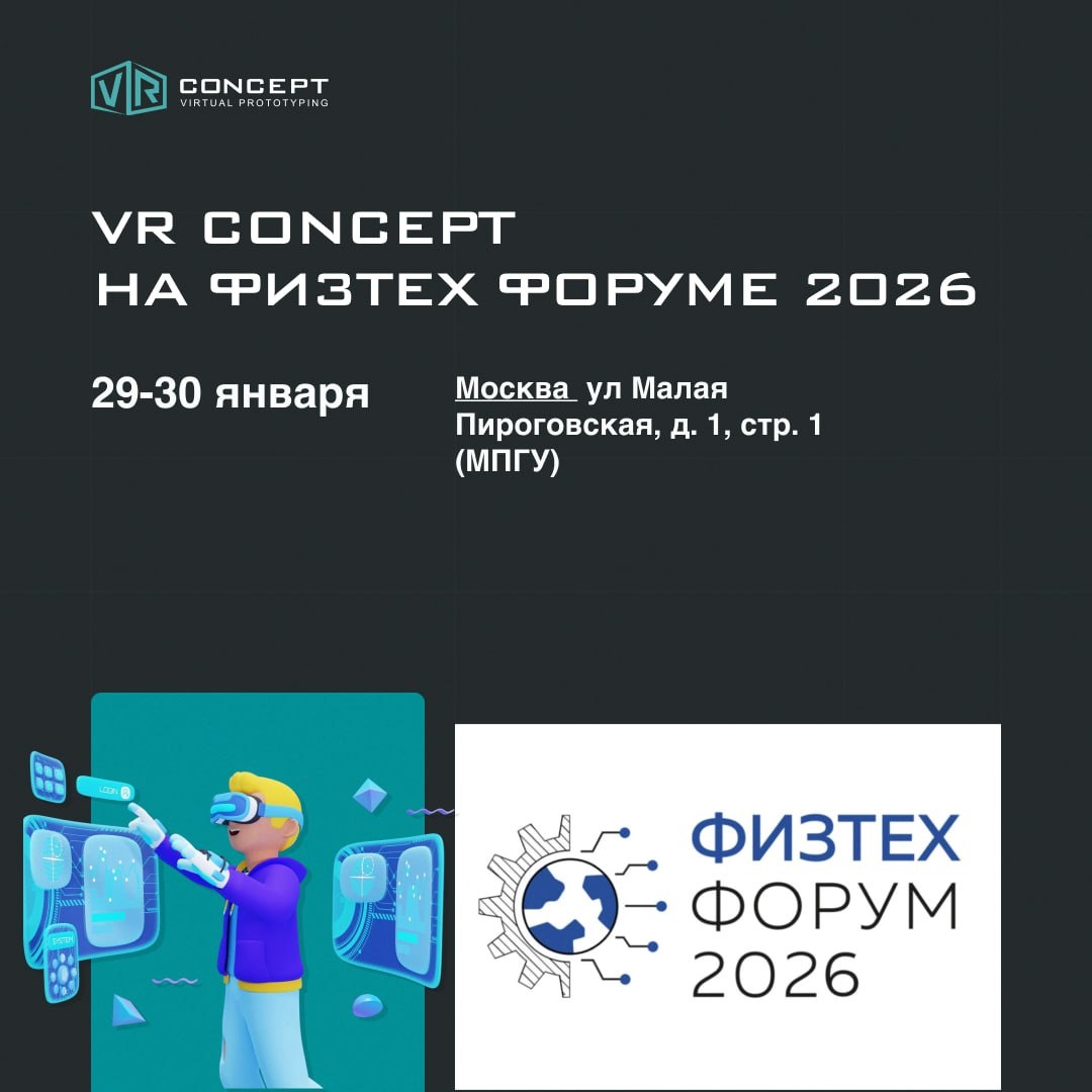 Компания VR Concept примет участие в Физтех Форуме 2026. Дата и место проведения: 📅 Даты: 29 — 30 января 2026 года. Время работы: с 09:00 до 18:00 (29 января), с 09:00 до 15:00 (30 января). Место: г. Москва, ул. Малая Пироговская, д. 1, стр. 1, Московский педагогический государственный университет (МПГУ). Цель Форума — консолидация усилий преподавателей, инженеров и учёных для создания и внедрения передовых педагогических технологий. Задача — формирование компетентных специалистов, способных решать современные технологические вызовы. Деловая программа включает пленарную дискуссию на актуальную тему: «Педагогика и достижения науки XXI века: синтез подходов и вызов современности». Наша задача на Форуме: представить профессиональному сообществу инновационные VR-решения для инженерного и естественно-научного образования. Мы продемонстрируем, как технологии виртуальной реальности повышают эффективность обучения, позволяя отрабатывать практические навыки в безопасной и контролируемо