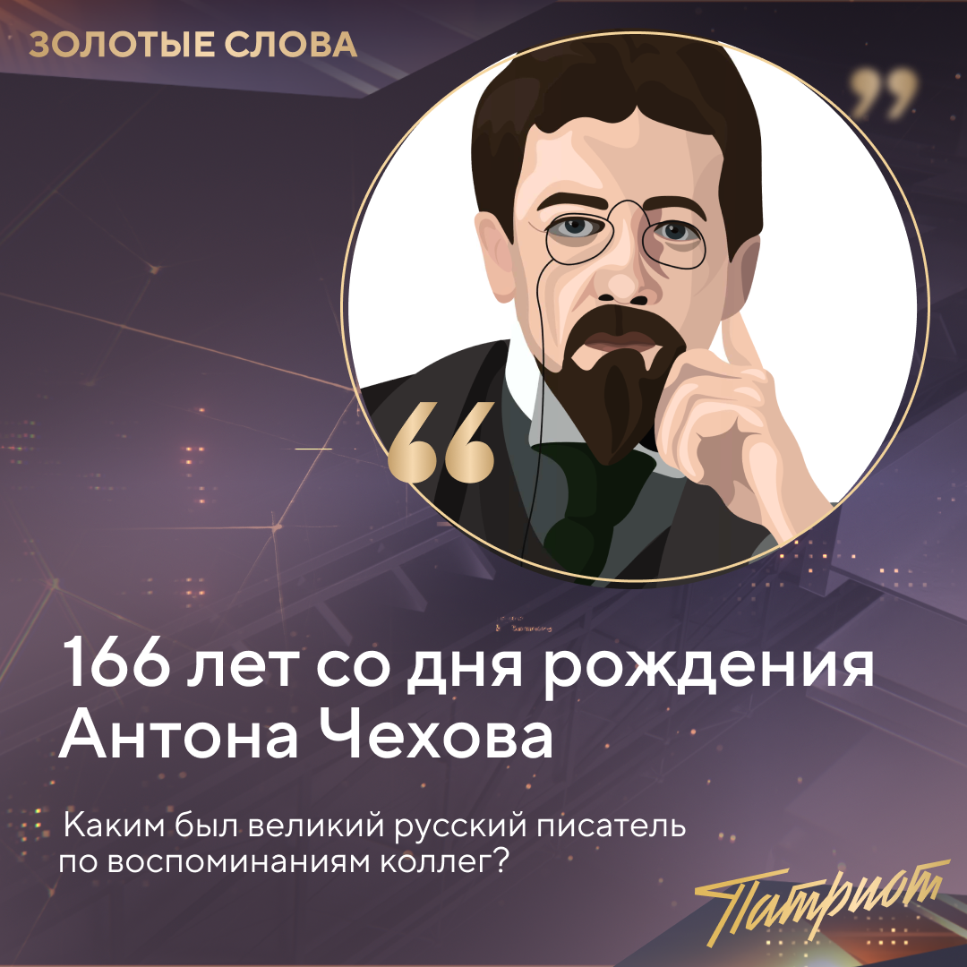⚡️ Он был врачом по профессии и гениальным писателем по призванию. Несмотря на короткую жизнь (Чехова не стало, когда ему было 44), изменил русскую литературу и мировой театр. 🔻 Антон Павлович полюбил литературу, будучи подростком. Учась в таганрогской гимназии начал писать рассказы. Выпускал юмористический журнал, ходил на постановки таганрогского театра и ставил свои спектакли вместе с друзьями. В 19 лет — поступил на медицинский в Москву и вскоре погрузился в практику, помогая врачам в подмосковной больнице. ☝️ А в 1880 году стал публиковать свои юмористические рассказы в журнале «Стрекоза». Через несколько лет — писал уже более глубокие драматические произведения. Но рассказывал он в них о самых обычных, повседневных ситуациях. И таким образом создал свой уникальный стиль, который позже признали новаторским. О том, как отзывались о гении его современники и потомки — читайте в карточках. А цитаты самого Чехова — опубликовали тут. Подписывайтесь на Патриот и узнавайте больше о вел