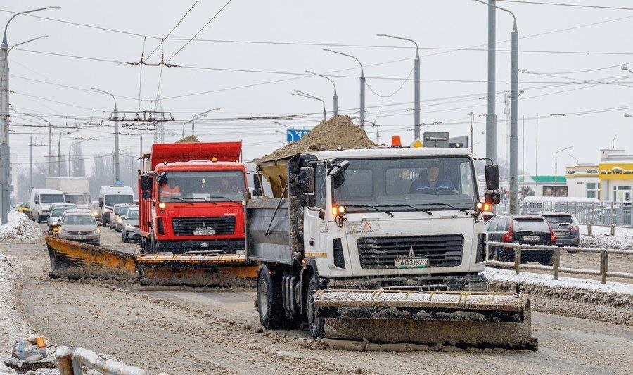 работников ЖКХ и почти 2 тыс. ед. спецтехники убирают снег в Беларуси Коммунальные службы продолжают убирать от снега, а также посыпать противогололедными материалами дороги, тротуары, остановки общественного транспорта. Для уборки снега дополнительно привлечено 396 ед. спецтехники и более 1180 работников сторонних организаций. 🔴 Читайте Sputnik Беларусь в MAX