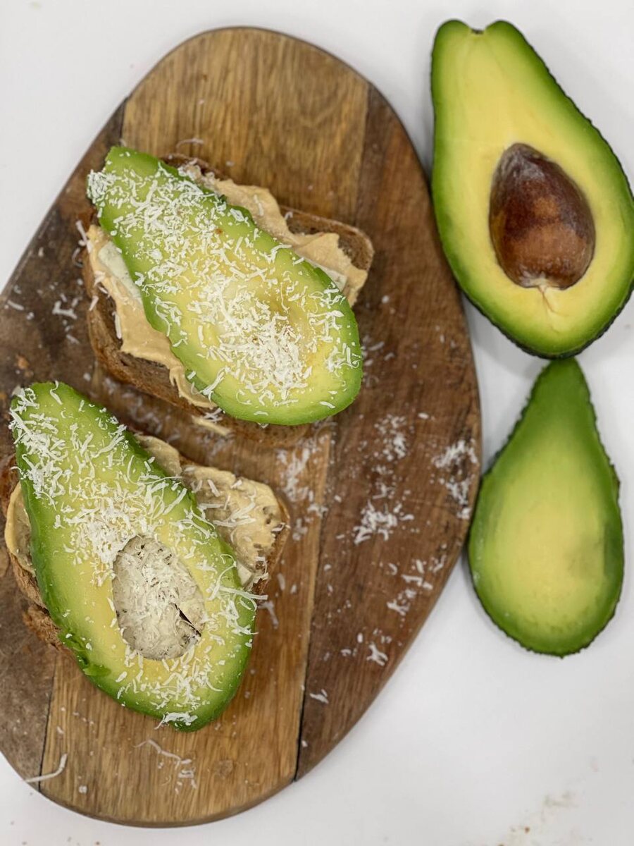 👋🏻 - гречишный хлеб на закваске (оочень большой ломоть) - хумус с Чили от Sababa (для пикантности) - тофу с укропом (балдежный во Вкусвил) - ломоть авокадо - тертый пармезан сверху Все это с собой на работу в качестве завтрака (собирается даже с утра) - и вы будете совсем не голодны до обеда 🥑 #утрогедонизма