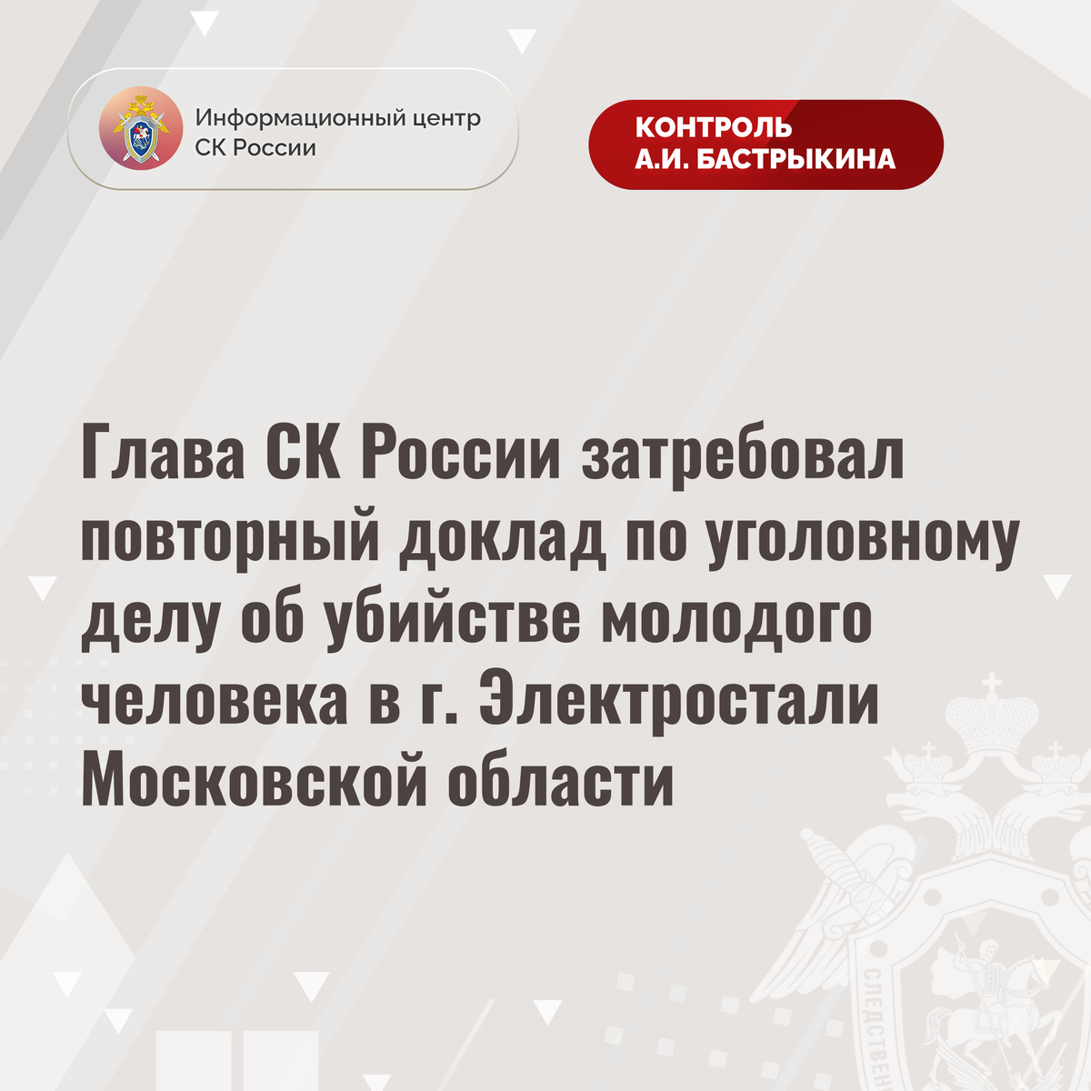 Глава СК России затребовал повторный доклад по уголовному делу об убийстве молодого человека в г. Электростали Московской области