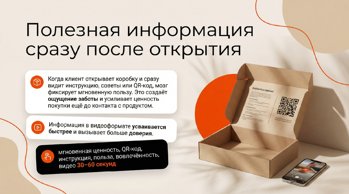 Коробка в руках клиента — это диалог, который либо укрепляет доверие к бренду, либо разрушает его за несколько секунд. Каждый элемент на коробке должен запускать конкретную психологическую реакцию: узнавание себя, предвкушение, благодарность и желание вернуться. Разберём, что именно печатать на коробке и как это влияет на восприятие покупателя. Что печатать: Когда человек открывает коробку и сразу видит полезную информацию, мозг фиксирует: я ещё даже не достал товар, а уже получил что-то полезное. Это создаёт положительный якорь. Практический пример: Покупатель наводит камеру телефона на qr-код и попадает на короткое видео (30-60 секунд), где показан правильный способ использования товара. Информация усваивается лучше, чем при чтении текста. Как бонус вы получаете метрику вовлечённости. Сколько людей отсканировали код? Это показатель интереса к продукту. Что печатать: Когда бренд проявляет внимание, пусть даже минимальное, человек подсознательно чувствует желание ответить тем же. Верн