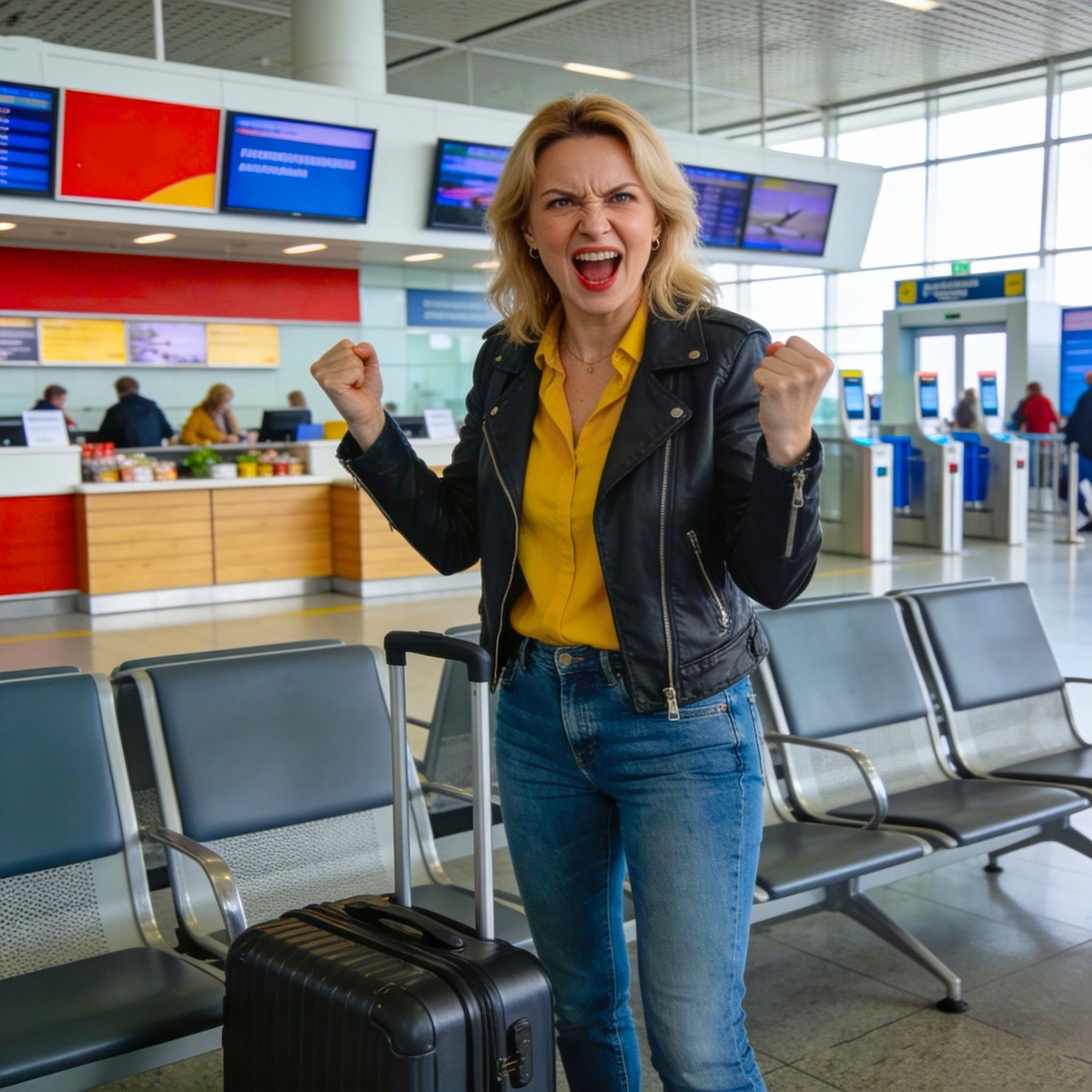 Я обернулась и застыла, не веря своим глазам. К нам, маневрируя между чемоданами и раздражёнными пассажирами, пробиралась Марина — сестра Андрея. На ней были огромные солнцезащитные очки, белая панама и ярко-розовый спортивный костюм, который она явно считала подходящим для путешествия. За спиной у неё громыхал ярко-малиновый чемодан размером с космический корабль.