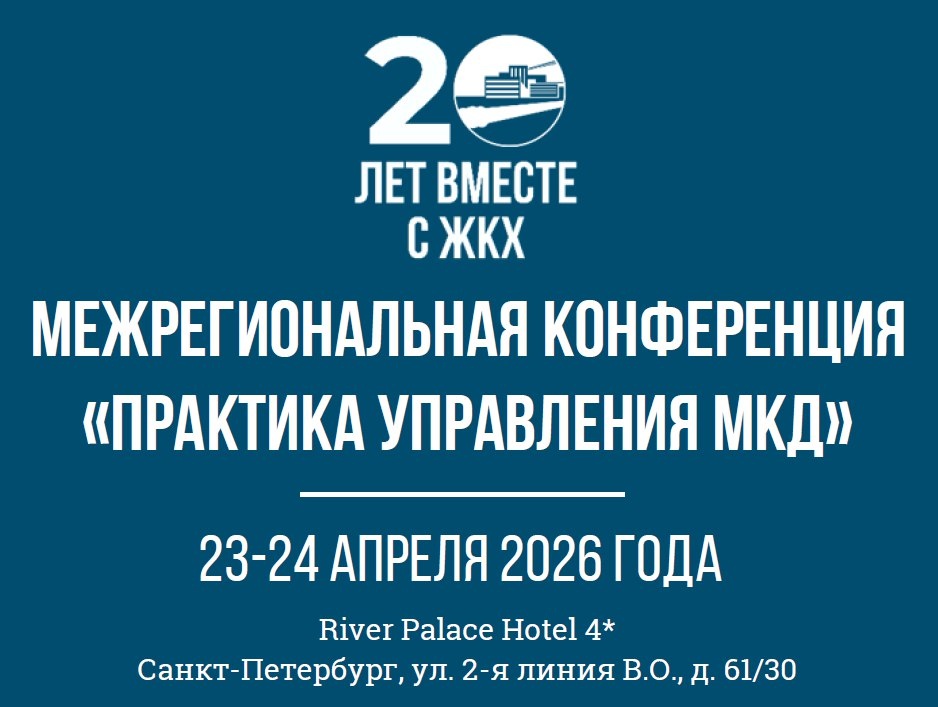 » 23-24 апреля 2026 года Информационный портал «Управление ЖКХ» проводит в Санкт-Петербурге Межрегиональную конференцию «Практика управления МКД». Мероприятие станет профессиональной площадкой для обсуждения ключевых изменений, обмена опытом и выработки практических решений. Программа конференции включает: - Ключевые изменения в работе управляющих организаций в 2026 году; - Текущий и капитальный ремонт общего имущества МКД; - Эффективная работа с кадрами в жилищной сфере; - Размер платы за содержание жилого помещения, НДС на УСН, КР на СОИ; - Практический тренинг с разбором реальных кейсов участников. Информационный портал «Управление ЖКХ» приглашает всех желающих принять участие в мероприятии с целью повышения компетенций и эффективности работы специалистов жилищной сферы.