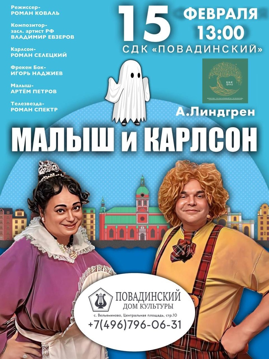 ✨ МАЛЫШ и КАРЛСОН МУЗЫКАЛЬНЫЙ СПЕКТАКЛЬ ДЛЯ ВСЕЙ СЕМЬИ Режиссёр: РОМАН КОВАЛЬ Композитор: Заслуженный Артист РФ ВЛАДИМИР ЕВЗЕРОВ Автор: АСТРИД ЛИНДГРЕН Инсценировка: АНАСТАСИЯ КОЛЕСНИКОВА Перевод со шведского: ЛИЛИАННА ЛУНГИНА 📆 15.02.2026🕒13:00 🏢 Повадинский сельский дом культуры (СДК) 📍 г.о.Домодедово, с.Вельяминово, 10, Центральная площадь 🎫 Купить билет: https://fond-im-narodnykh-artisto.timepad.ru/event/3785178/ ✅ Мероприятия Домодедово https://dzen.ru/id/66f10385cc4c5a16f7b5fb02 http://vk.com/domodedovo_events http://dzen.ru/domodedovo_events