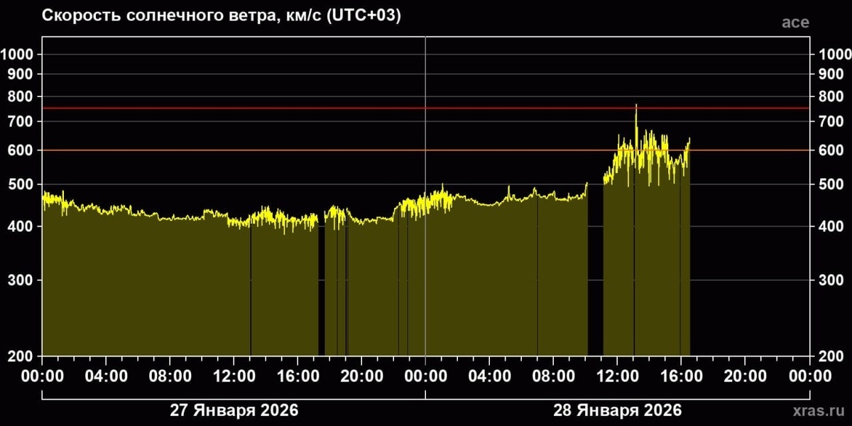 На Земле вновь возможны магнитные бури. К Земле пришёл поток быстрого солнечного ветра из корональной дыры, сообщает институт космических исследований (ИКИ) РАН. Резких ударов не было, поэтому геомагнитные индексы пока держатся в зелёной зоне, но в ближайшее время могут измениться. Поступающие с орбиты параметры плазмы выглядят благоприятными для разгорания полярных сияний. Вероятность увидеть это явление в средних широтах минимальная. Кроме того, центральная Россия скрыта за облаками, пояснили в лаборатории солнечной астрономии ИКИ РАН. Ранее «Башинформ» сообщал, что на Солнце могут произойти вспышки предпоследнего класса мощности.
