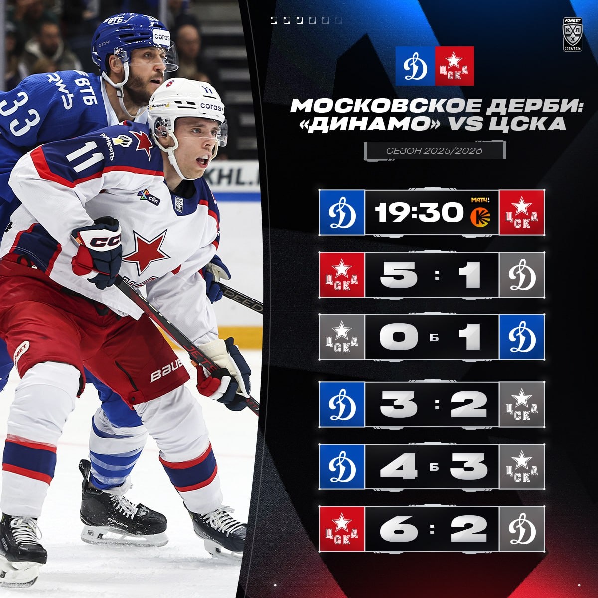 Московское «Динамо» ведет 3-2 в сезонной серии против ЦСКА. Смогут ли армейцы сравнять счет в решающем, шестом дерби регулярки?